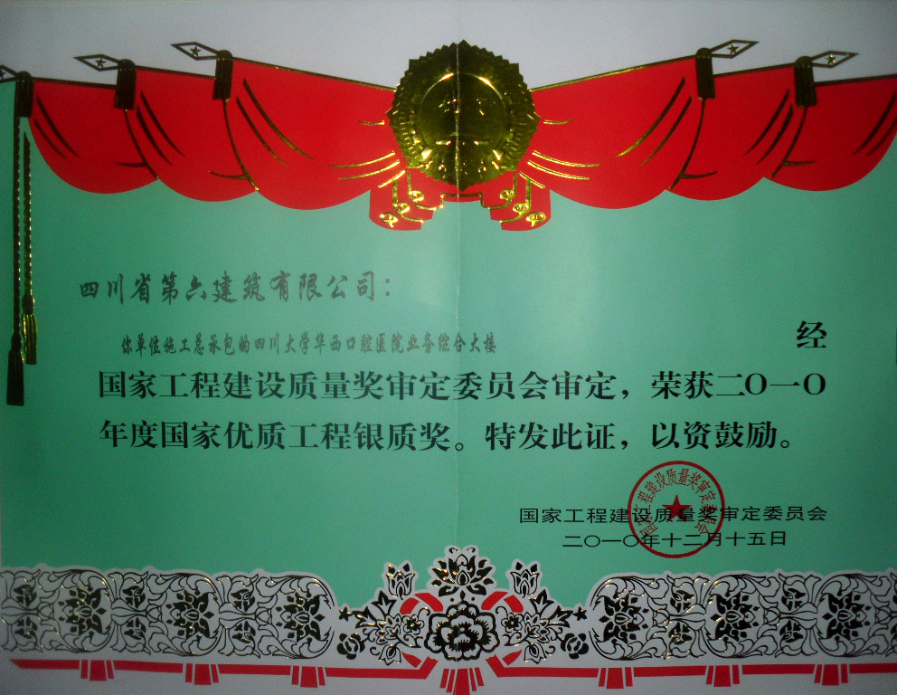 四川省優(yōu)質(zhì)工程“天府杯”金獎32項、銀獎16項