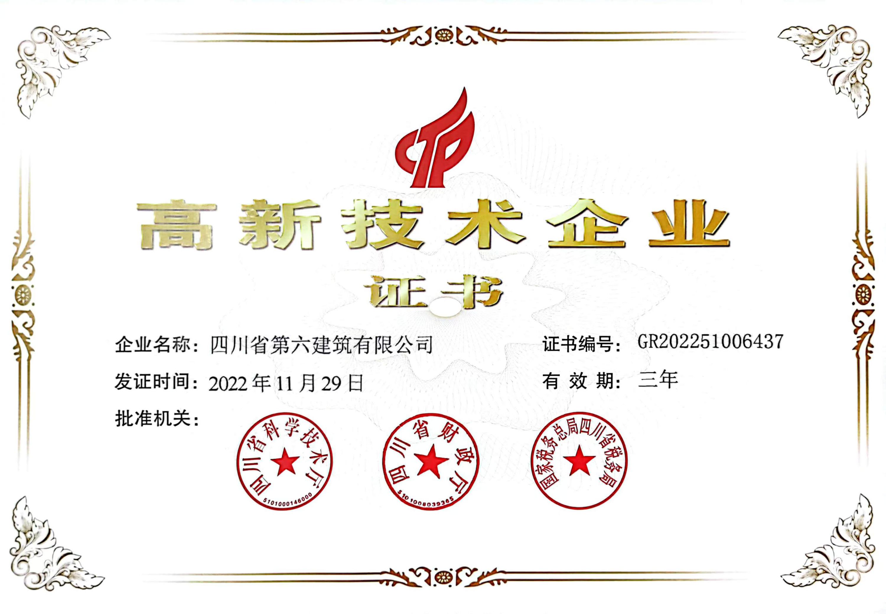 新年傳捷報,起步即奔跑!在集團的高度重視和大力支持下,通過一年努力,四川六建順利通過了國家高新技術企業(yè)認定,榮獲國家“高新技術企業(yè)”稱號,成為股份公司首家高新技術企業(yè)!