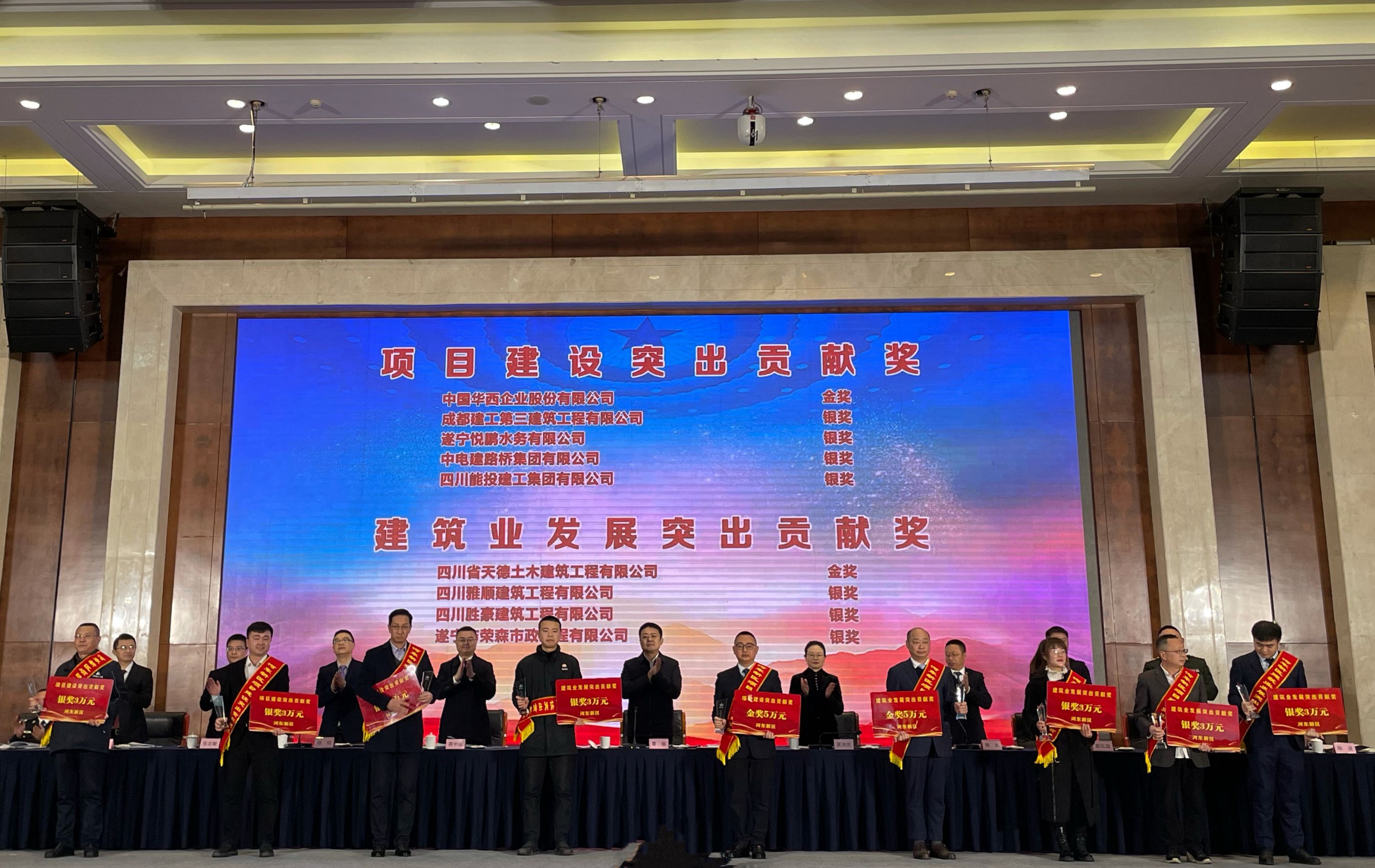 2月17日,從遂寧市河?xùn)|新區(qū)傳來喜訊,由二分公司承建的四川師范大學(xué)遂寧校區(qū)(四川鄉(xiāng)村振興學(xué)院)項(xiàng)目榮獲遂寧市河?xùn)|新區(qū)“項(xiàng)目建設(shè)突出貢獻(xiàn)金獎(jiǎng)”,二分公司及項(xiàng)目部有關(guān)代表出席頒獎(jiǎng)儀式。