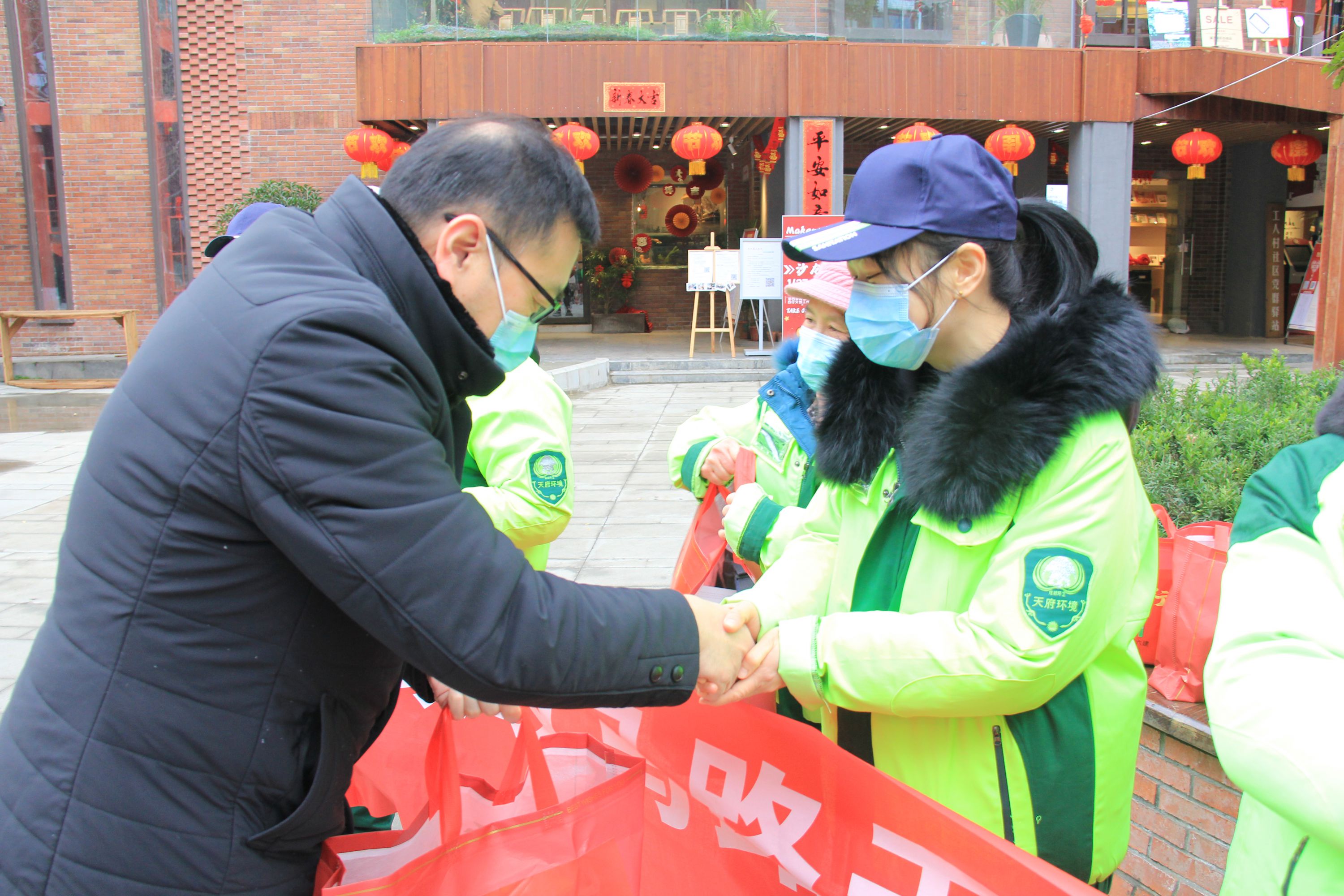 冬天的成都街頭寒氣襲人,為了感謝環(huán)衛(wèi)工人的默默付出和辛勤勞動,讓他們在寒冷冬日中感受到一絲溫暖,1月27日下午,由四川六建主辦、工人村社區(qū)協(xié)辦的“致敬馬路天使,六建溫暖行動”的公益愛心活動在工人村社區(qū)服務(wù)點(diǎn)進(jìn)行。公司黨委副書記、工會主席章慶,工人村社區(qū)黨委書記、居委會主任楊健勇、工人村社區(qū)黨委副書記李莉,公司青年志愿者、工人村片區(qū)環(huán)衛(wèi)站工人共計(jì)20余人參加了本次活動。