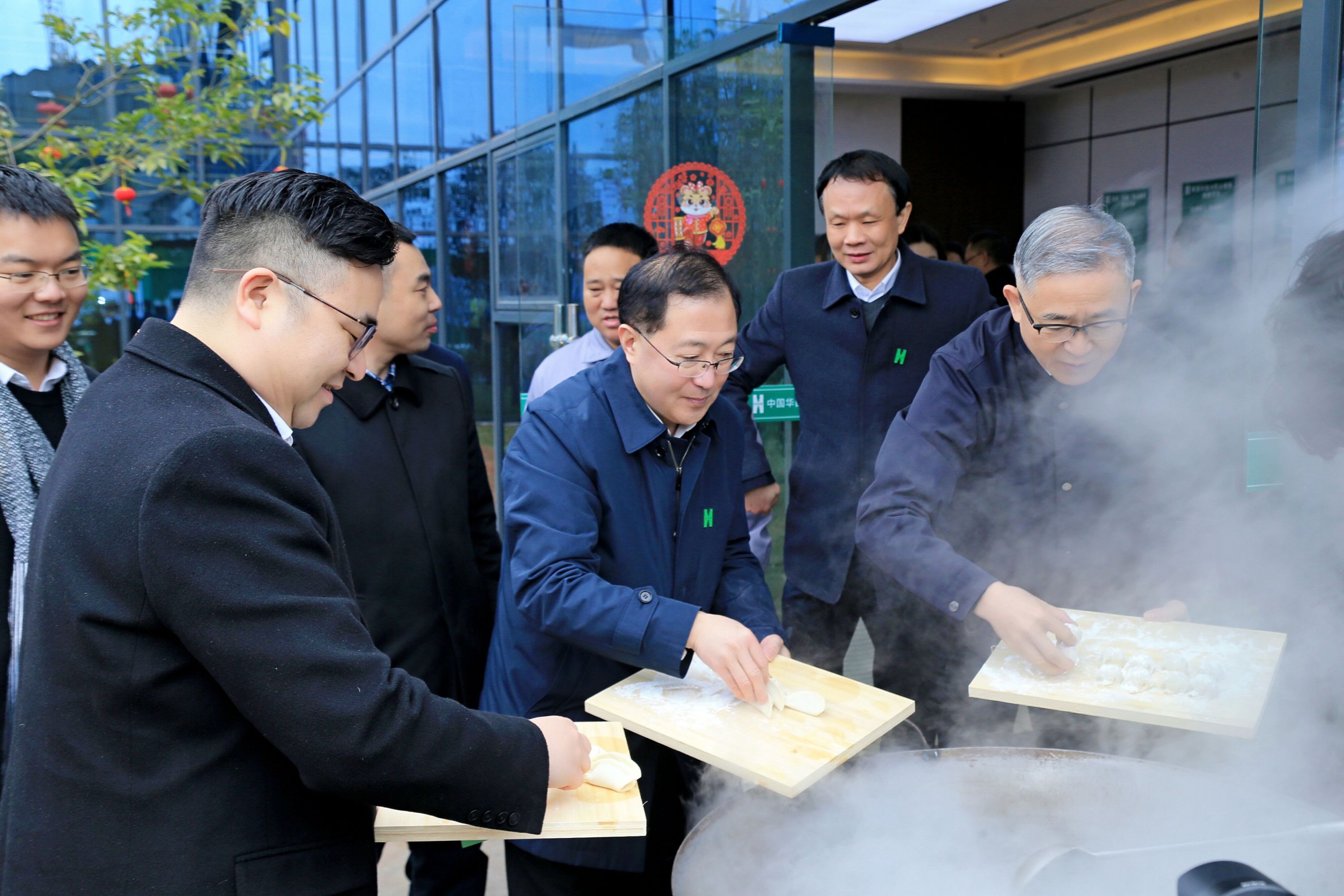 隨后,楊斌一行走進(jìn)項目食堂,戴上袖套與項目管理人員一起搟面和餡,一起包餃子,一起煮餃子……食堂里熱氣氤氳,暖流激蕩,一盤盤熱氣騰騰的餃子端上桌,讓所有建設(shè)者瞬間感受到回家吃年飯的感覺?!懊恳晃蝗A西善建者都了不起,幸福生活是奮斗出來的,奮斗是為了幸福生活,祝大家新年快樂,虎虎生威!”楊斌舉起茶杯,向奮戰(zhàn)在一線的全體項目管理人員送上祝福和新年寄語。