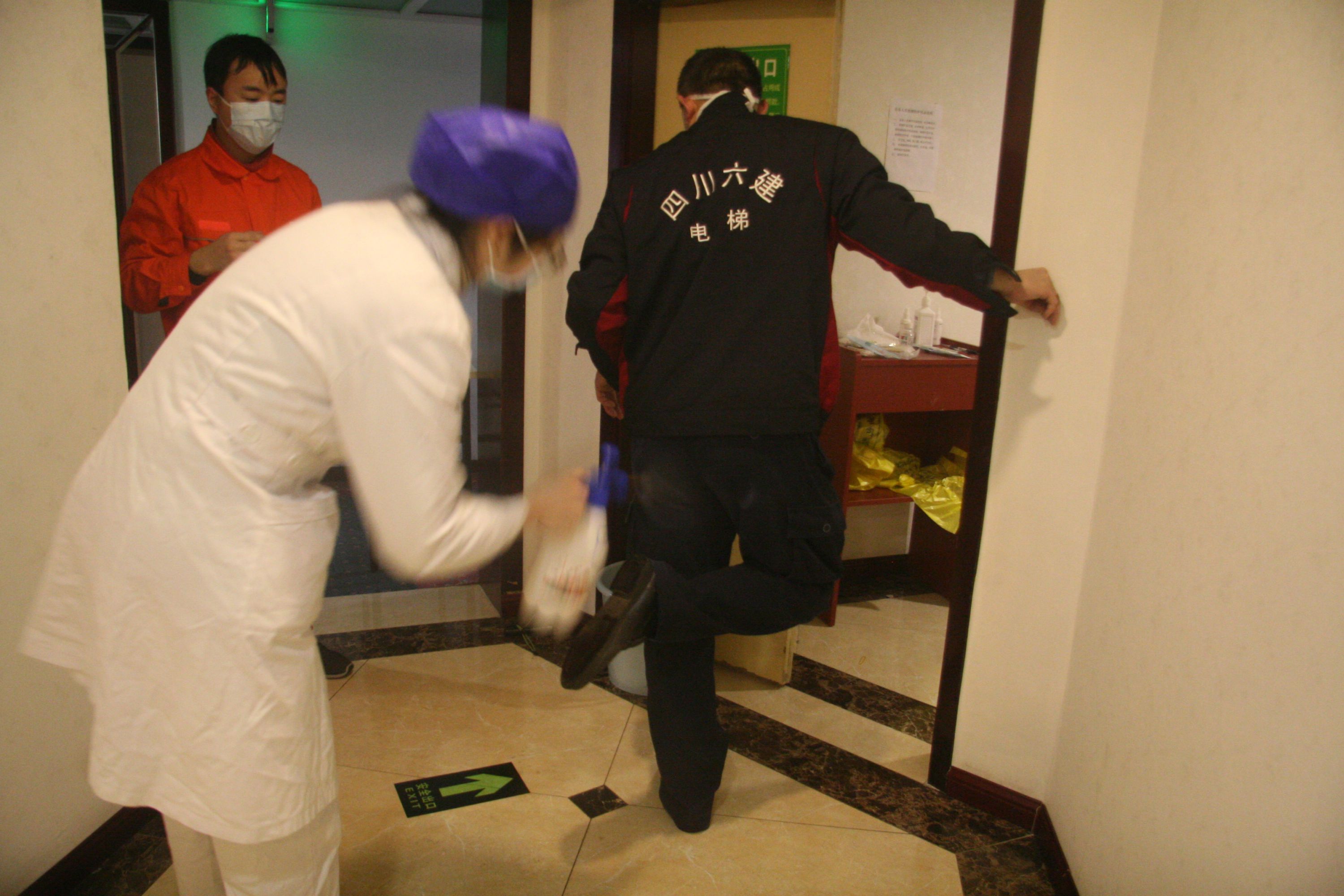 “這個(gè)拉鏈有沒有拉緊?”“檢查好了,沒有問題!”,六建電梯員工段周康、高勇兩名維保人員正在安全區(qū)相互檢查醫(yī)用防護(hù)服,這次維保任務(wù)是成都大酒店的電梯年檢工作。該酒店于1月26日被金牛區(qū)人民政府征用,作為“金牛區(qū)留置人員觀察點(diǎn)”,酒店內(nèi)有50多名留置人員,20多名醫(yī)護(hù)人員和工作人員。為確保酒店內(nèi)人員的乘梯安全以及正常生活和工作,六建電梯維保人員義無反顧,“疫”往直前,開展電梯年檢工作。