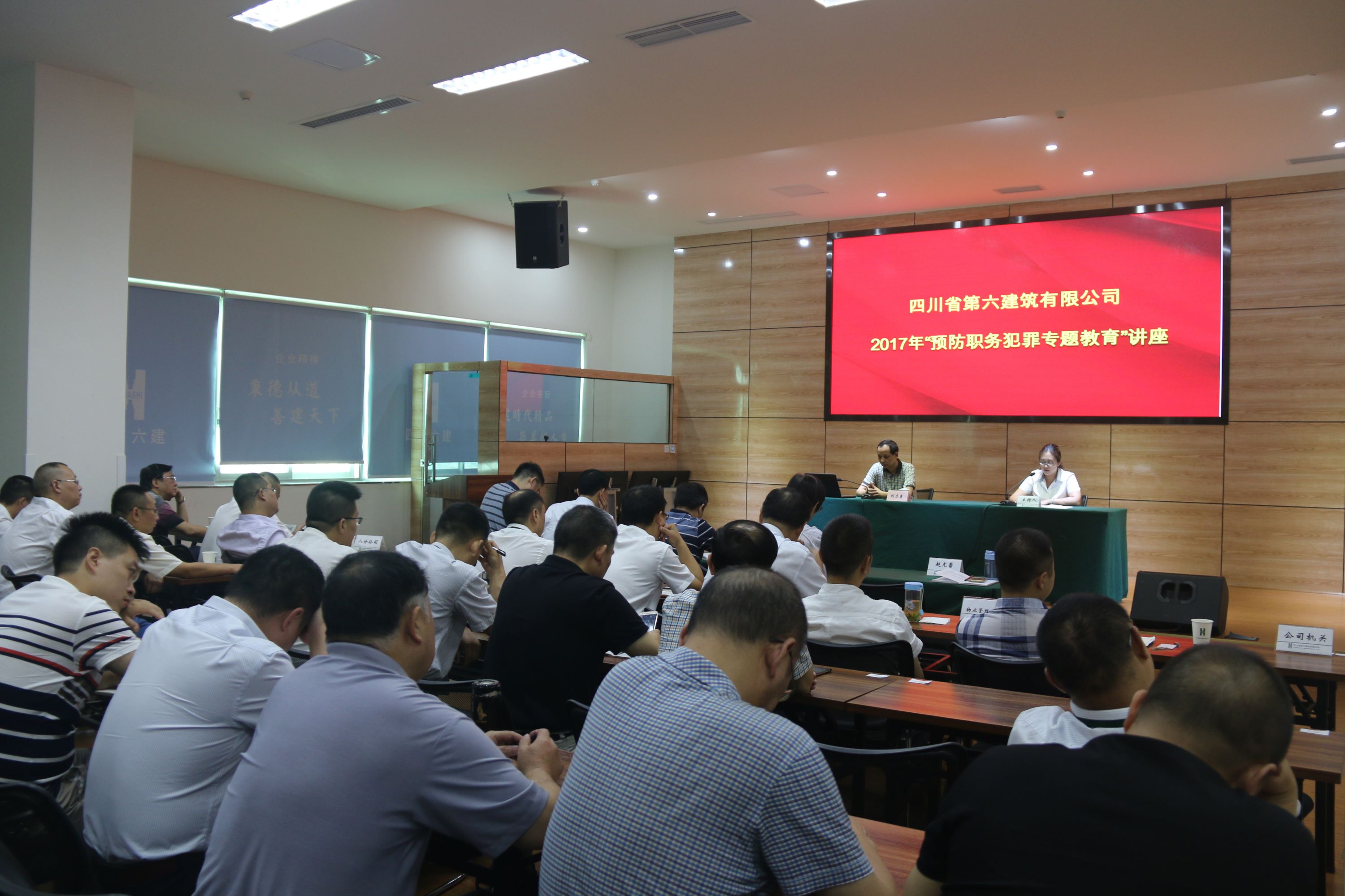 為提高公司干部職工拒腐防變的能力,形成自覺(jué)守紀(jì)律、講規(guī)矩意識(shí),7月14日,公司邀請(qǐng)金牛區(qū)檢察院反貪局局長(zhǎng)劉志勇到公司為廣大干部職工做了一堂精彩的“預(yù)防職務(wù)犯罪專題教育”講座。公司在家領(lǐng)導(dǎo)出席講座,另有公司機(jī)關(guān)各部門(mén)負(fù)責(zé)人、高級(jí)主管;成都地區(qū)各單位黨總支書(shū)記/直屬黨支部書(shū)記、總經(jīng)理;各單位部門(mén)負(fù)責(zé)人和項(xiàng)目經(jīng)理代表,共計(jì)67人參加講座。