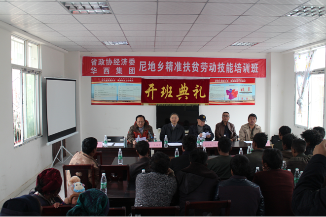 參加開班典禮的領導有省政協(xié)常委、經(jīng)濟委主任、省委省政府決策咨詢委員會副主任王海林;省政協(xié)經(jīng)濟委副主任、省國資委黨委原副書記雷??;涼山州政協(xié)副主席、州工商聯(lián)主席宋光明;昭覺縣政協(xié)副主席馬紅兵;昭覺縣尼地鄉(xiāng)鄉(xiāng)長陳勁松和四川省建筑技工學校校長敬志安。