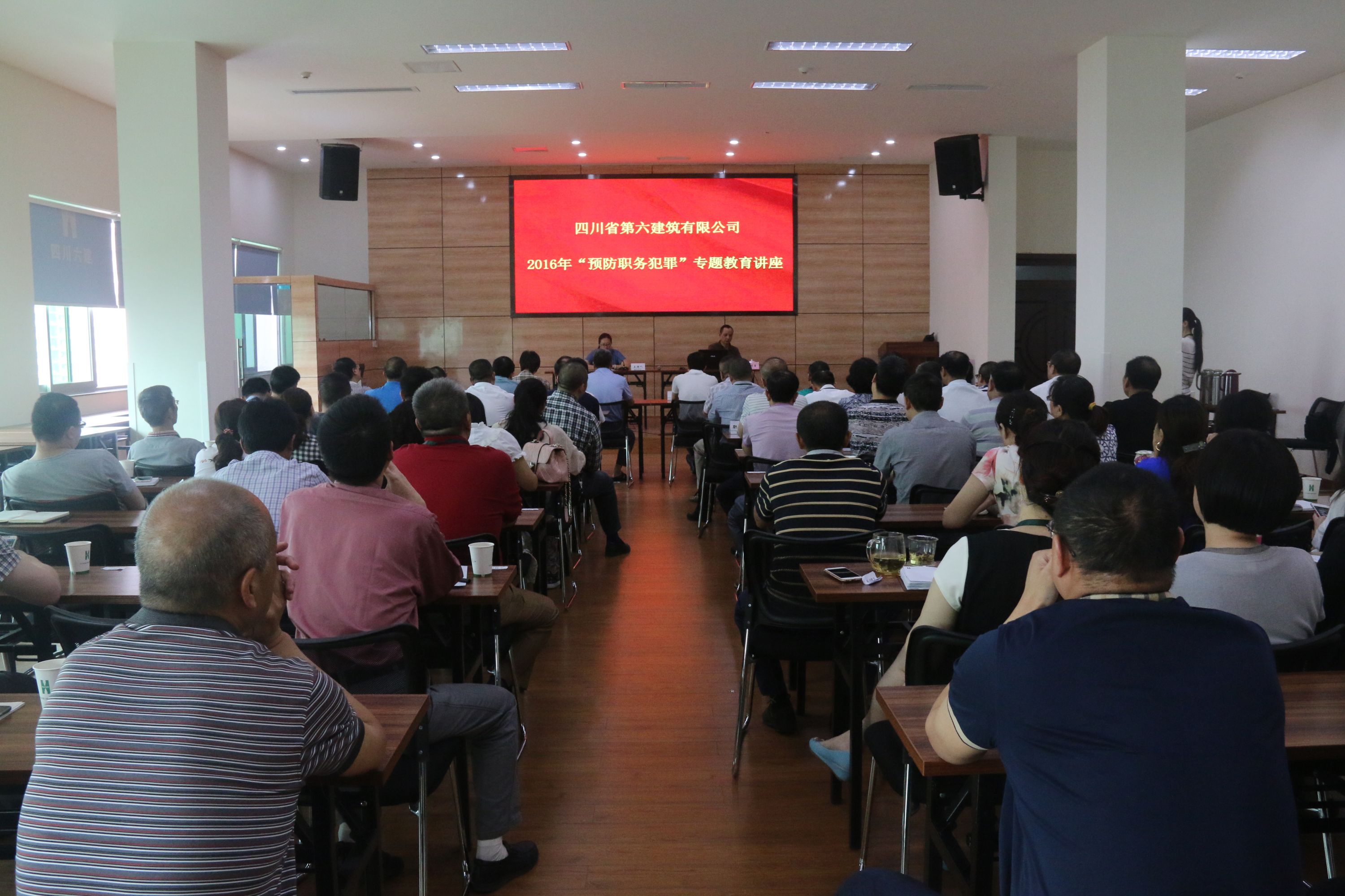 6月1日,公司邀請(qǐng)金牛區(qū)檢察院反貪局局長劉志勇以《樹立廉潔從業(yè)意識(shí) 遠(yuǎn)離職務(wù)犯罪》為題,向公司領(lǐng)導(dǎo)班子成員、中層管理人員共64人做了一堂預(yù)防職務(wù)犯罪專題教育講座。公司領(lǐng)導(dǎo)凌鋒、馬洪力、袁玉家、邱山明、趙尤蕾出席講座。公司各部門負(fù)責(zé)人、高級(jí)主管;成都地區(qū)各單位黨總支書記/直屬黨支部書記、總經(jīng)理;各單位部門負(fù)責(zé)人和項(xiàng)目經(jīng)理代表參加講座。公司紀(jì)委書記、工會(huì)主席趙尤蕾主持講座。