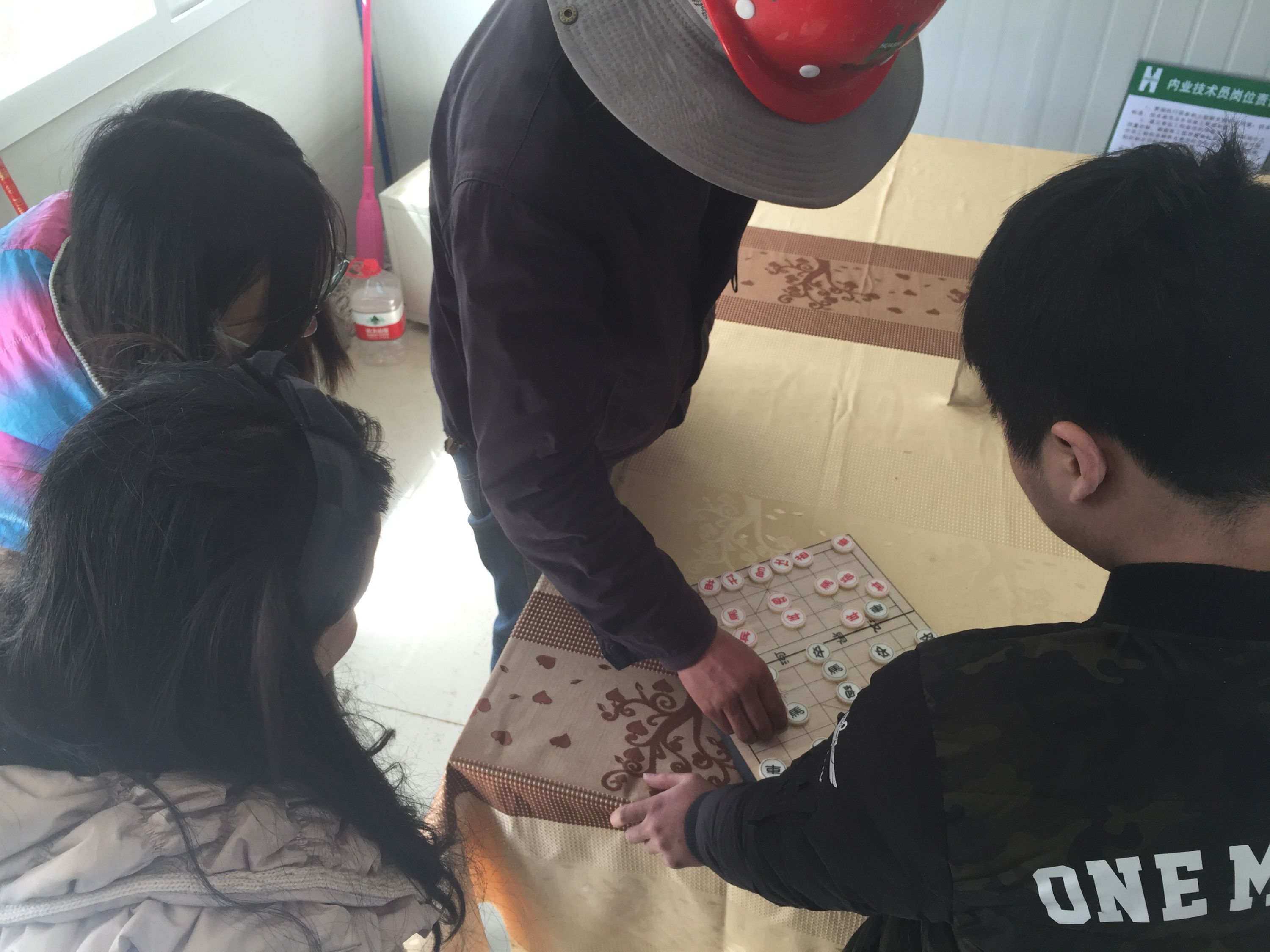 棋王爭(zhēng)霸可不止棋,比賽分為三項(xiàng)青年員工喜聞樂(lè)見(jiàn)的項(xiàng)目:象棋、五子棋及斗地主。象棋采用單局晉級(jí)制外,其余項(xiàng)目均采用三局兩勝制。青年員工全員參與,從4月28日開(kāi)賽到5月4日落下帷幕,這場(chǎng)高原爭(zhēng)霸持續(xù)了一周的時(shí)間,這一周里,不論是隊(duì)員還是觀眾都非常投入,貼在墻上的那張手繪示意表格不斷更新,項(xiàng)目部洋溢著青春的活力,大家熱情高漲,工作時(shí)也更加精神煥發(fā)。