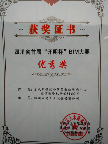 四川省首屆“開明杯”BIM大賽,由四川省土木建筑學(xué)會(huì)建筑信息化專委會(huì)主辦,旨在推動(dòng)建筑業(yè)信息化和BIM技術(shù)的發(fā)展。安裝分公司BIM技術(shù)組攜《樂(lè)成新世紀(jì)小商品企業(yè)展示中心空調(diào)制冷機(jī)房的BIM應(yīng)用》作品參賽,經(jīng)過(guò)層層選拔,脫穎而出,榮獲了開明杯BIM大賽優(yōu)秀獎(jiǎng),證明了安裝分公司的實(shí)力,提高了公司的影響力。