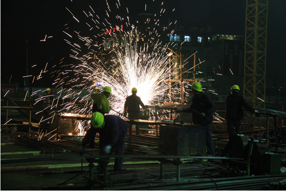 年關(guān)之際,災(zāi)區(qū)重鎮(zhèn)蘆陽鎮(zhèn)過年味道越來越重,然而除了濃濃的年味,這里還氤氳著員工們大干“搶工”而掀起的干勁。春節(jié)每個人對回家團員都有著迫切的渴望,然而,肩負(fù)著災(zāi)后重建的任務(wù)漢姜古城項目員工依然堅守工作崗位,為實現(xiàn)春節(jié)前1—6棟樓主體封頂,1、2區(qū)地下室正負(fù)零封頂目標(biāo)分秒必爭進行搶工。