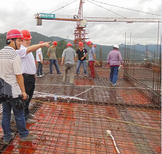 緊接著進(jìn)行的是主樓地梁和樓上部分的工程。為了達(dá)到設(shè)計(jì)圖紙上的標(biāo)高,現(xiàn)場(chǎng)澆筑的樁砼需要通過(guò)破樁小部分、調(diào)直鋼筋,才便于和地梁相連接,才能達(dá)到設(shè)計(jì)圖紙的要求,現(xiàn)場(chǎng)施工員蹲點(diǎn)指揮挖機(jī),操作破樁的噪音非常大,現(xiàn)場(chǎng)人員不得不扯著嗓子不厭其煩地大聲指揮。當(dāng)?shù)亓汉蜆洞罱硬⑶翼艥矒v完成后,地上部分開始進(jìn)入正軌。每個(gè)樓層面施工前,放線測(cè)量布置各個(gè)構(gòu)件的水平點(diǎn)及標(biāo)高,控制樓體的結(jié)構(gòu)標(biāo)高和平面布局;接著是鋼筋工按圖紙綁扎鋼筋,現(xiàn)場(chǎng)管理人員對(duì)圖檢查并指導(dǎo),針對(duì)有爭(zhēng)論的地方,和班組共同協(xié)商探討解決;模板在綁扎之后定格成型,依靠室內(nèi)室外腳手架,參照?qǐng)D紙各個(gè)部位的尺寸大小,制作模板,然后支護(hù)腳手架完成模板安裝,便于砼澆筑可以有效的成型而不被爆模,保證施工質(zhì)量和主體外觀。這些工作完成之后,還要進(jìn)行潤(rùn)濕模板澆搗砼,為保證構(gòu)件砼密實(shí)和鋼筋有效咬合,必須在不破壞鋼筋制安的基礎(chǔ)上充分振搗,而且水平板面控制是一個(gè)關(guān)鍵點(diǎn),這個(gè)點(diǎn)控制板厚,而板厚又直接影響房間凈高,在工程完工的分戶驗(yàn)收也會(huì)受其影響;澆搗完成之后,養(yǎng)護(hù)一段時(shí)間,便可以拆模。