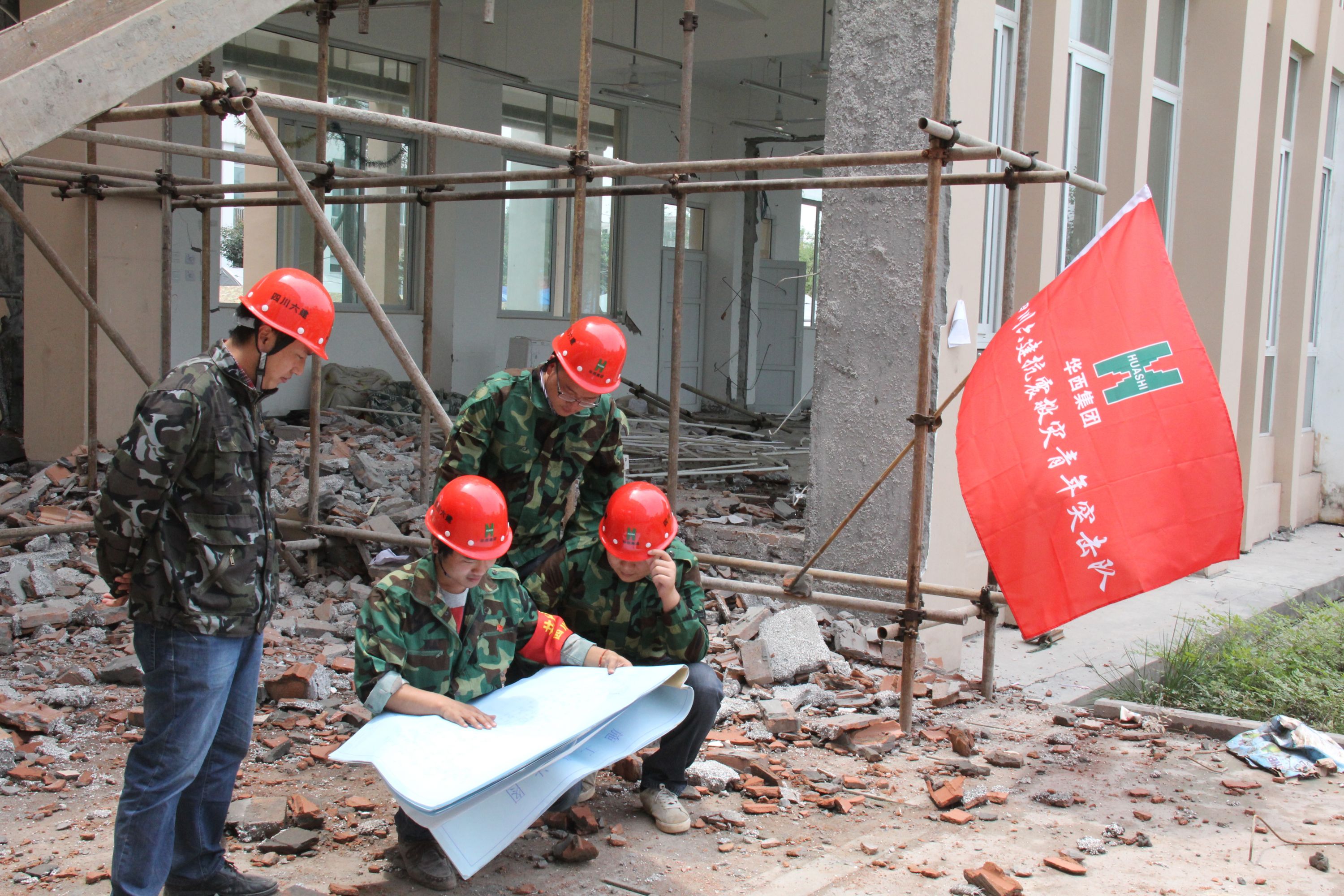 青年突擊隊在蘆山地震現(xiàn)場進(jìn)行房屋鑒定工作