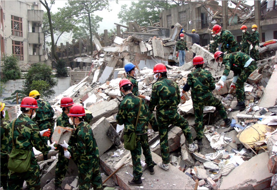抗震救災(zāi)搶險隊在蘆山中學(xué)